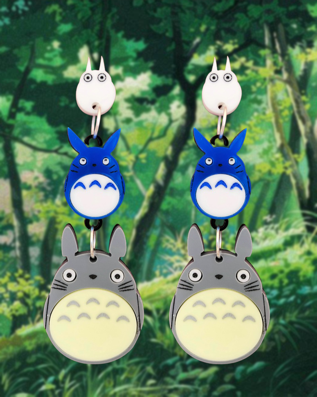The T0toro Stack Earrings feature a variety of acrylic colors with engraved details. All my designs are digitally created, laser cut, and then hand assembled.